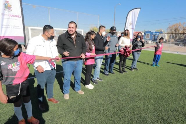 El presidente municipal, Cruz Pérez Cuéllar, inauguró una cancha de futbol con pasto sintético que fue colocada en el Parque lineal Mar Azul 3, que se ubica en el fraccionamiento Parajes del Sur.
