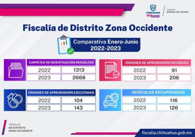 La Fiscalía de Distrito Zona Occidente destacó durante la reunión con integrantes de la Mesa de Seguridad y Justicia, convocada por el Fideicomiso para la Competitividad y Seguridad Ciudadana (FICOSEC) Cuauhtémoc, el incremento en un 103 por ciento en carpetas de investigación resueltas en el periodo enero a junio del presente año.