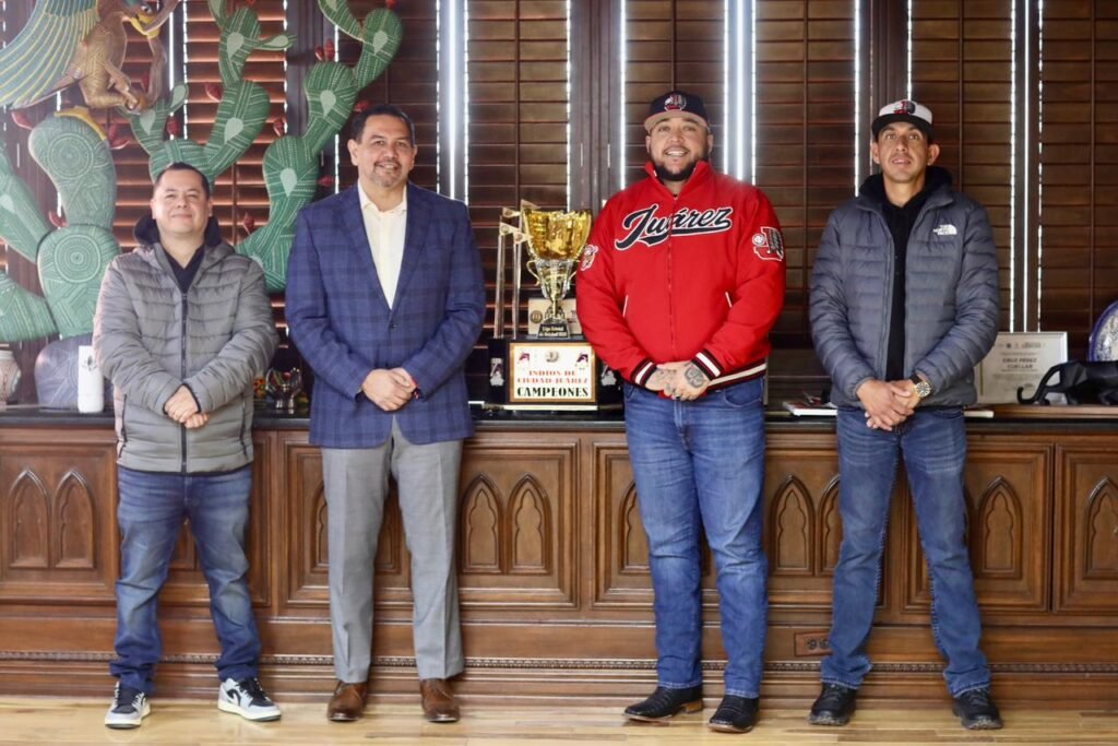 El Presidente Municipal, Cruz Pérez Cuéllar recibió en su despacho a integrantes del equipo de beisbol Indios de Juárez, quienes presentaron sus planes rumbo a la temporada 2026 y refrendaron su compromiso de defender el campeonato de la Liga Estatal de Beisbol, luego de una sequía de 25 años.