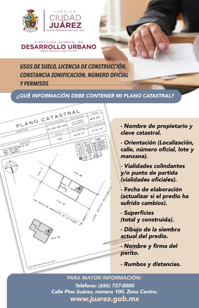 Para facilitar los trámites que tienen como requisito la presentación de un plano catastral, como la Licencia de Uso de Suelo o de Funcionamiento, el documento debe contar con ciertas especificaciones, informó Claudia Morales Medina, titular de la Dirección General de Desarrollo Urbano.