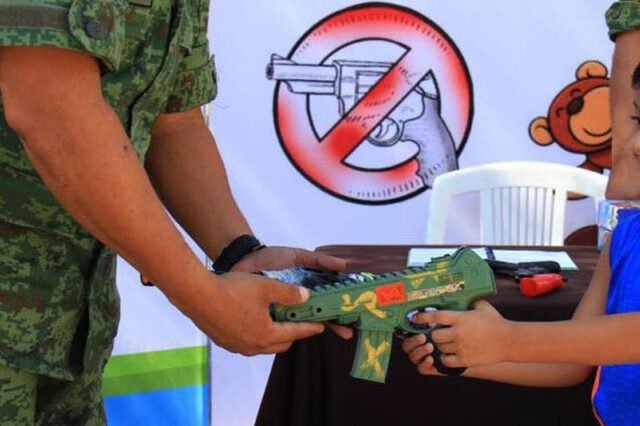La Secretaria de la Defensa Nacional inició de manera paralela una campaña de canje de juguetes bélicos por juguetes y dulces y será en el mismo módulo el cambio de armas.