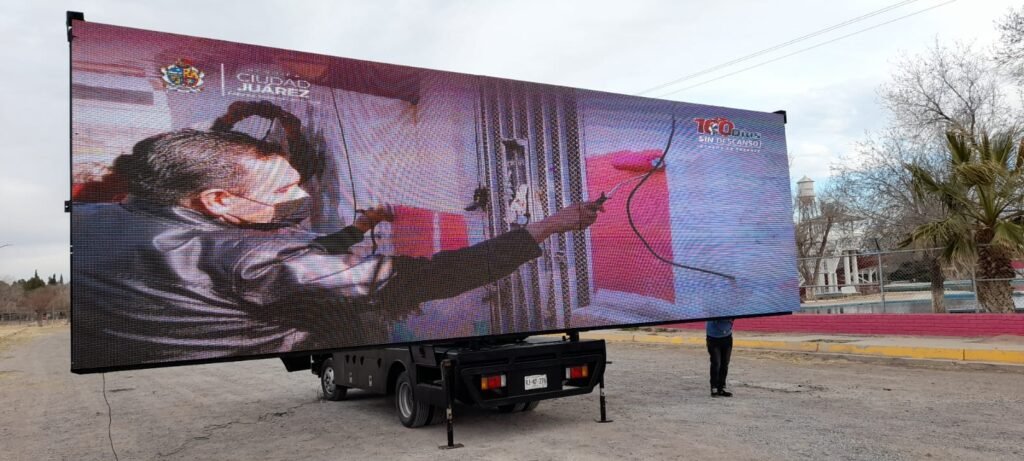 Estas proyecciones se llevarán a cabo en una pantalla gigante con dimensiones de nueve metros de base por tres de alto, la cual está montada en un camión, lo que facilita su desplazamiento por toda la ciudad, indicó.
