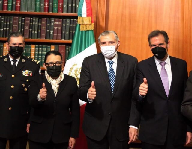 Los secretarios de Gobernación, Adán Augusto López Hernández; de Seguridad y Protección Ciudadana (SSPC), Rosa Icela Rodríguez Velázquez; el comandante general de la Guardia Nacional (GN), Luis Rodríguez Bucio; el consejero presidente del Instituto Nacional Electoral (INE), Lorenzo Córdova Vianello; y el titular de la Fiscalía Especializada en materia de Delitos Electorales (FEDE) de la Fiscalía General de la República (FGR), José Agustín Ortiz Pinchetti, instalaron la Mesa de Seguridad Interinstitucional Segob-SSPC-INE-FEDE.