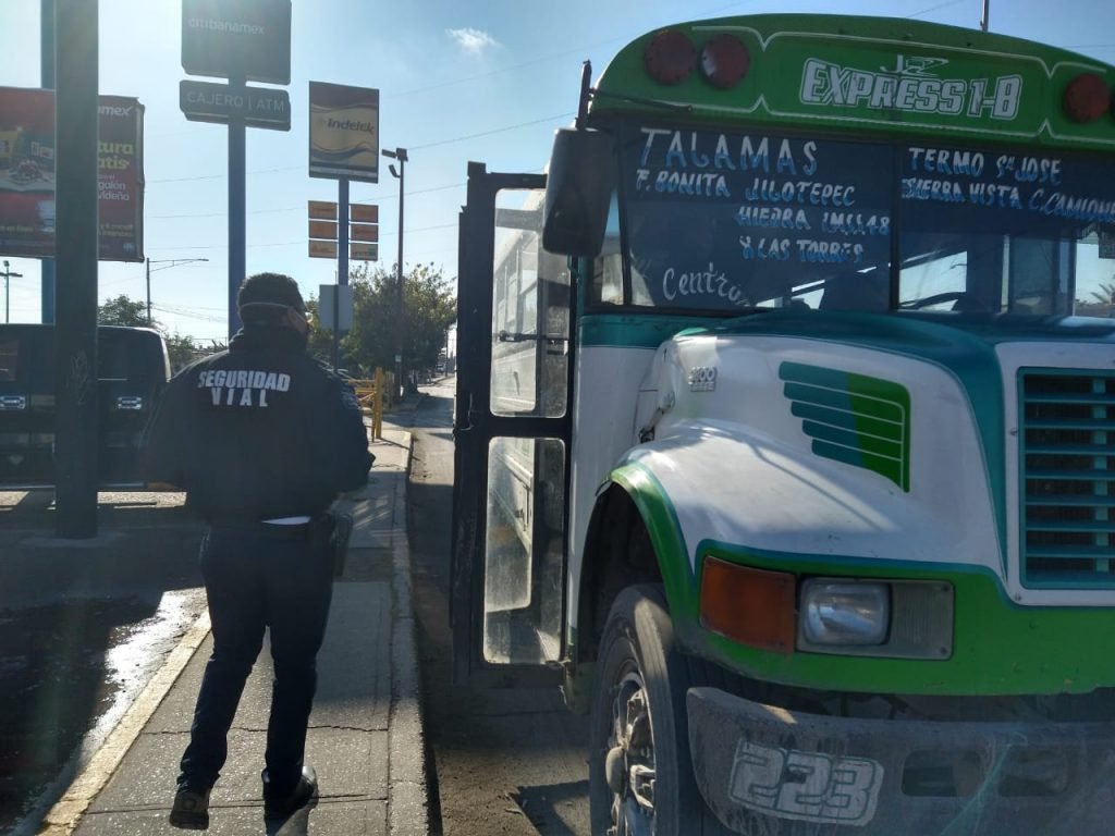 En las intervenciones se evita que los camiones lleven un aforo mayor al 50 por ciento de su capacidad, indicando a los pasajeros que guarden la sana distancia y lleven puesto de manera correcta el cubrebocas.