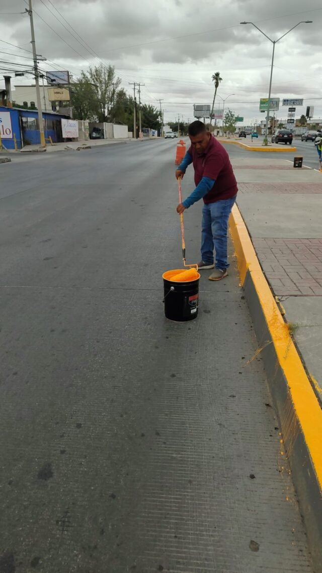 Personal de la Dirección de Limpia seguirán pintando los cordones de banquetas y del camellón central de la Paseo de la Victoria, en el tramo del bulevar Manuel Gómez Morín a la avenida Ejército Nacional, con el fin de mejorar la imagen urbana de distintos sectores de la ciudad.