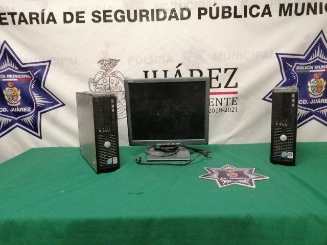 Gracias a la pronta respuesta de los agentes preventivos al llegar al lugar se percataron de un masculino que reunía con las características proporcionados en la denuncia, mismo que se encontraba saliendo del plantel educativo con dos CPU y un monitor, motivo por el cual se procedió a realizar la formal detención de quien se identifico como Saul Andrés J. N. de 24 años.