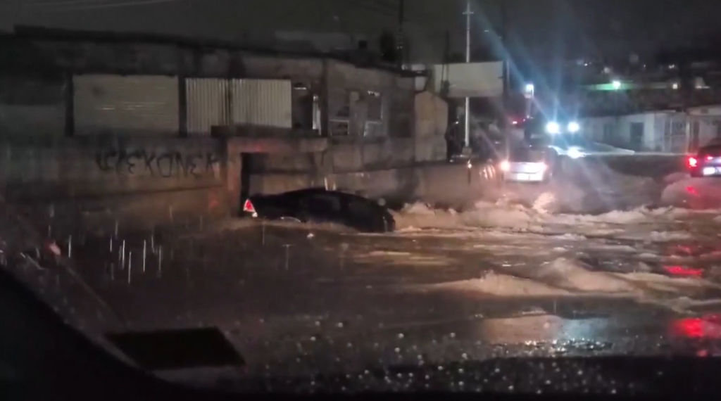 En las redes sociales se difundió un video donde un vehículo es arrastrado por las fuertes corrientes de agua, lo anterior sucedió en las calles Santiago y 16 de septiembre al poniente de la ciudad, los ocupantes lograron ponerse a salvo.