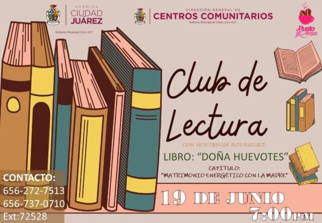 El Club de Lectura con Hortensia López se va a llevar a cabo mañana jueves 19 de junio a las 7:00 de la tarde vía la plataforma digital Zoom.