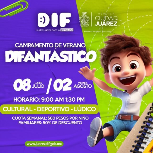 El Sistema para el Desarrollo Integral de la Familia del Municipio de Juárez (DIF) invita a la población a inscribir a las niñas y niños a pasar un verano en los campamentos DIFantásticos, que se desarrollarán en los Centros de Atención Social y Educativo Para Las Familias (CASEF), en donde podrán pasar unas vacaciones inolvidables en medio de mucha diversión y aprendizaje.