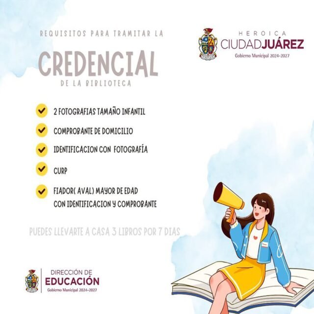 Quienes cuenten con esta credencial pueden llevar a casa hasta tres libros por un periodo de siete días, y el trámite puede realizarse cualquier día del año en la biblioteca municipal de su preferencia.