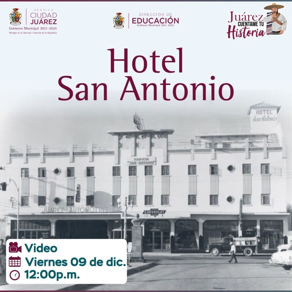 La Dirección de Educación Municipal invita a los juarenses a ver la cápsula educativa sobre el Hotel San Antonio, ubicado en la avenida 16 de Septiembre, entre las calles Constitución y Quintana Roo, frente al Mercado Juárez.