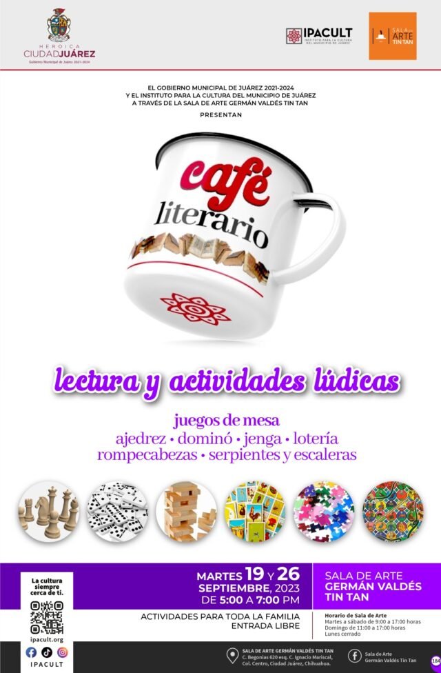 Desde hoy y todos los martes del mes de septiembre, a partir de las 5:00 de la tarde sigue vigente la convivencia con lecturas y juegos de mesa en la Sala de Arte Germán Valdés “Tin Tan”, ubicada en la calle Begonias número 620, en la Zona Centro.