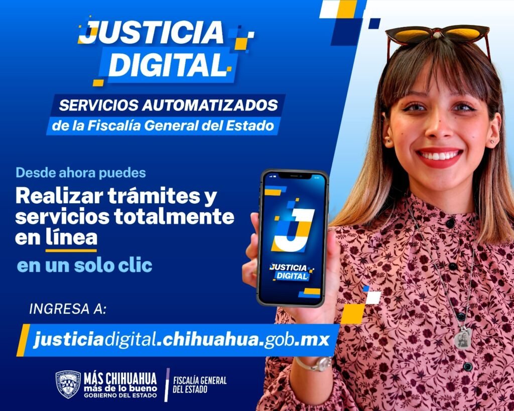 En estas fiestas decembrinas y en el periodo vacacional, la Fiscalía General del Estado está cada vez más cerca de ti, de manera presencial en sus instalaciones o al alcance de un clic por medio de nuestra plataforma de Servicios Digitales https://justiciadigital.chihuahua.gob.mx.