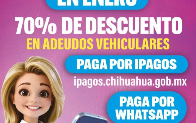 Los pagos pueden realizarse a través de la página ipagos.chihuahua.gob.mx, por WhatsApp al número (614) 372 17 00, o mediante referencia para pago en bancos o tiendas de conveniencia.