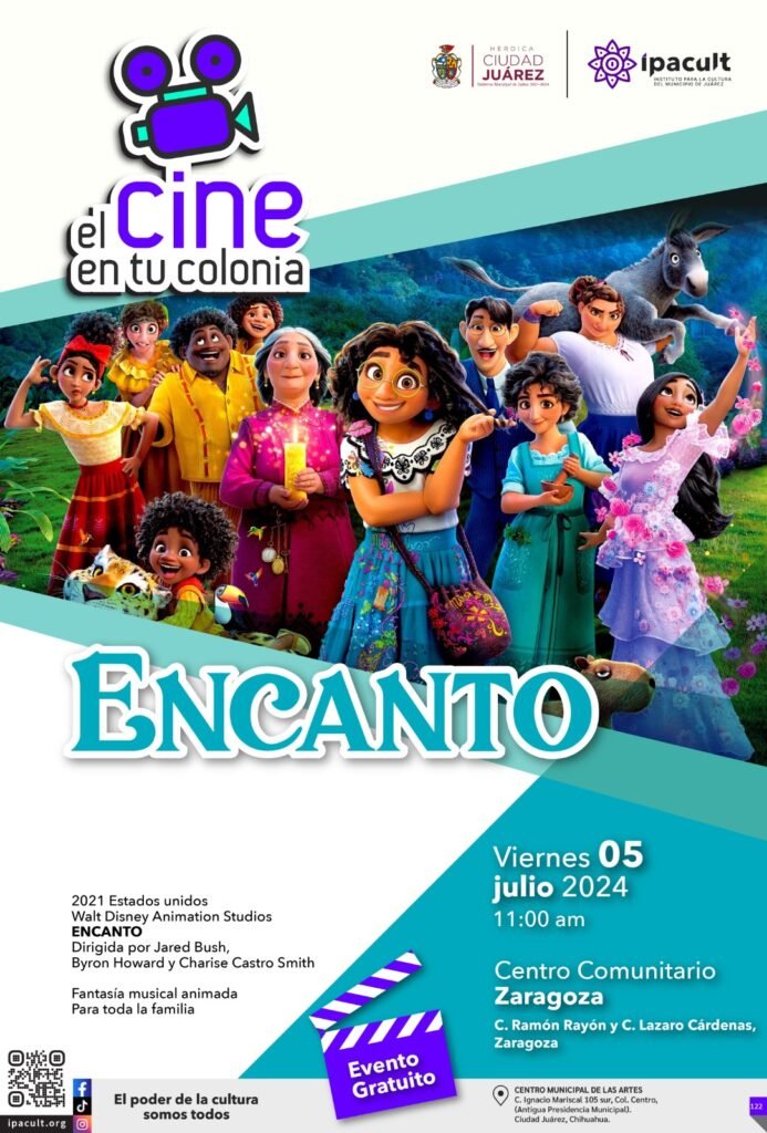 El Instituto para la Cultura del Municipio de Juárez (IPACULT), que encabeza Myrna Judith Barajas Martínez, invita a todos los ciudadanos a disfrutar de la película “Encanto”, la cual será proyectada este viernes en el Centro Comunitario Zaragoza.