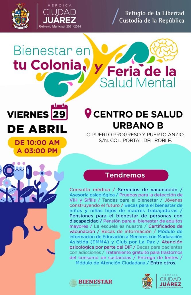 El Gobierno Municipal y la Secretaría de Bienestar invitan a la Feria de la Salud Mental y Bienestar en el Centro de Salud Urbano B.