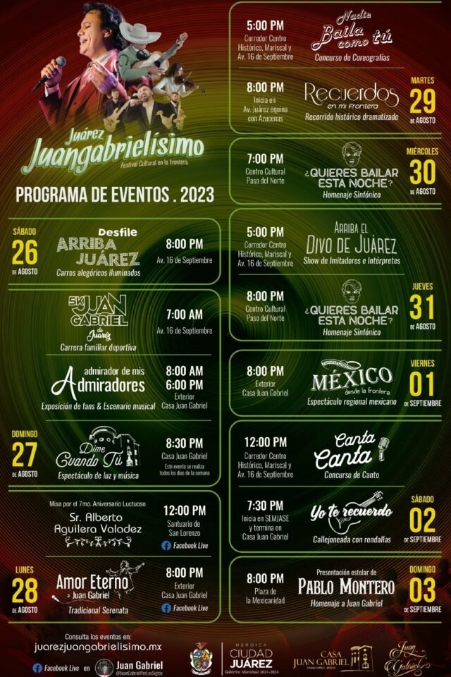 El próximo sábado dará inicio el festival “Juárez Juangabrielísimo”, con el arranque del desfile nocturno “Arriba Juárez”, por lo que se invita a la ciudadanía a acudir y disfrutar de este y otros espectáculos.