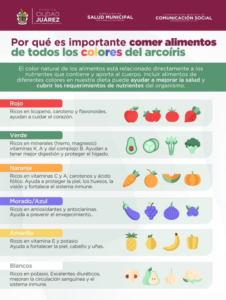 La doctora Daphne Santana Fernández, directora de Salud, comentó que las frutas y verduras son pieza fundamental de una alimentación saludable, además gracias a su color natural, los alimentos se relacionan directamente a los nutrientes que contienen, lo que ayuda a las personas a cubrir los requerimientos de nutrientes del organismo.