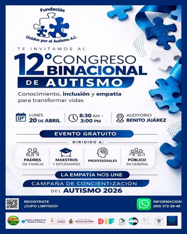 Con el objetivo de fortalecer la inclusión y generar conciencia social, el próximo 20 de abril se realizará el XII Congreso Binacional de Autismo en el Auditorio Cívico Municipal Lic. Benito Juárez.
