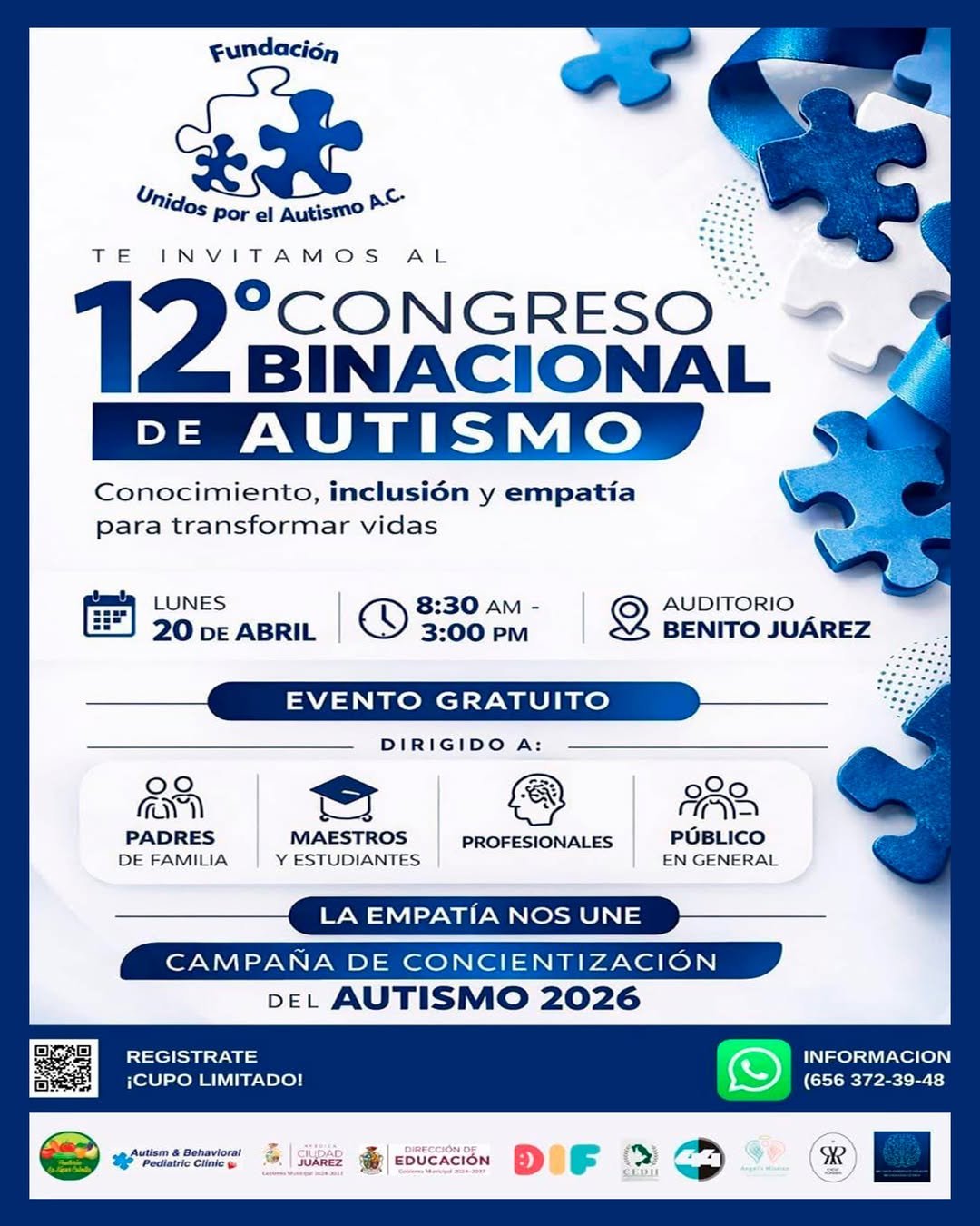 Para más información, se encuentra disponible el número de WhatsApp 656 372 3948, donde se brindará atención a quienes deseen asistir o resolver dudas sobre el congreso.