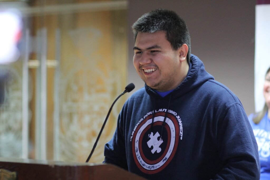 Mauricio Esparza, quien tiene autismo y forma parte de la asociación civil, invitó a la comunidad fronteriza a unirse a la caminata y divertirse.