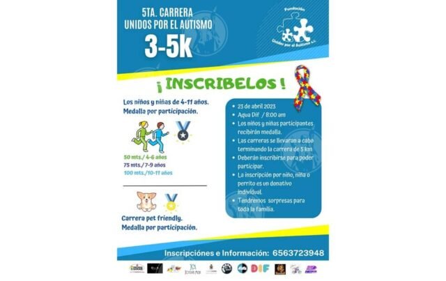 La Fundación Unidos por el Autismo, invitó a niñas y niños a participar en las carreras especiales que se realizarán este domingo, y que serán dirigidas para menores desde los 4 hasta los 11 años de edad.