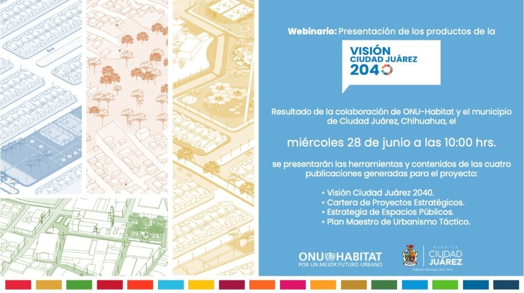 Verónica González Sepúlveda, coordinadora de Resiliencia, dijo que durante el webinario se presentarán los objetivos y contenidos principales de los trabajos que se hicieron en colaboración y a lo largo de más de 12 meses, como es la presentación de Visión Ciudad Juárez 2040, la entrega de una cartera de Proyectos Estratégicos, la Estrategia de Espacios Públicos y el Plan Maestro de Urbanismo Táctico.