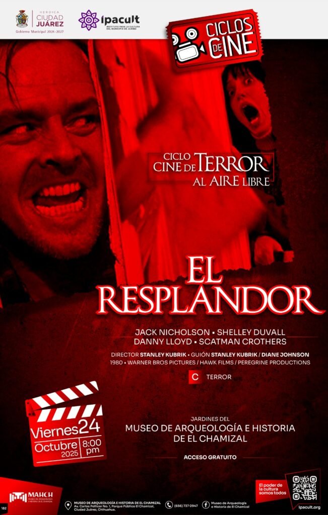 El Instituto para la Cultura del Municipio de Juárez (IPACULT) continúa encendiendo la pantalla grande con su Ciclo de Cine de Terror y esta semana invita al público juarense a disfrutar de la icónica película “El Resplandor” (The Shining), del maestro Stanley Kubrick.