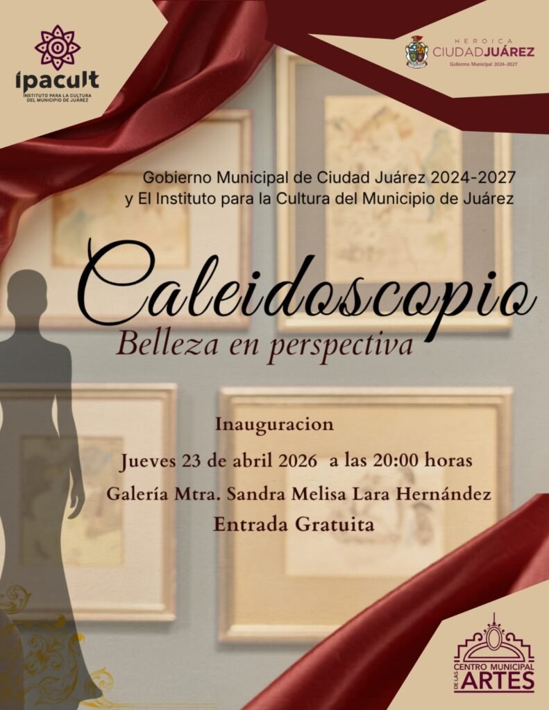 El Instituto para la Cultura del Municipio de Juárez (IPACULT) invita a la ciudadanía a la inauguración de la exposición colectiva “Caleidoscopio: Belleza en perspectiva”, que se llevará a cabo este jueves 23 de abril a las 8:00 de la noche en la galería Mtra. Sandra Melisa Lara Hernández del Centro Municipal de las Artes (CMA).