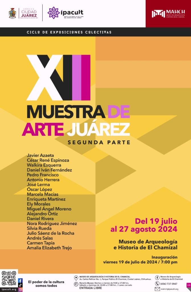 El Instituto para la Cultura del Municipio de Juárez (IPACULT), liderado por Myrna Judith Barajas Martínez, hace una invitación a la ciudadanía para asistir a la “XVII Muestra de Arte Juárez”, exposición colectiva que en su segunda parte se llevará a cabo en el Museo de Arqueología e Historia de El Chamizal (MAHCH).