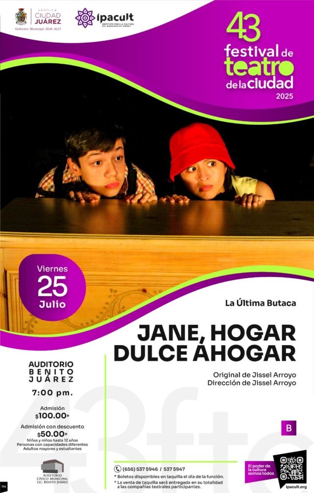 La función tendrá lugar este viernes 25 de julio a las 7:00 de la tarde, y forma parte de la programación oficial de la edición número 43 del festival, organizado por el Instituto para la Cultura del Municipio de Juárez (IPACULT). La obra está dirigida a público adolescente y adulto, con clasificación B.
