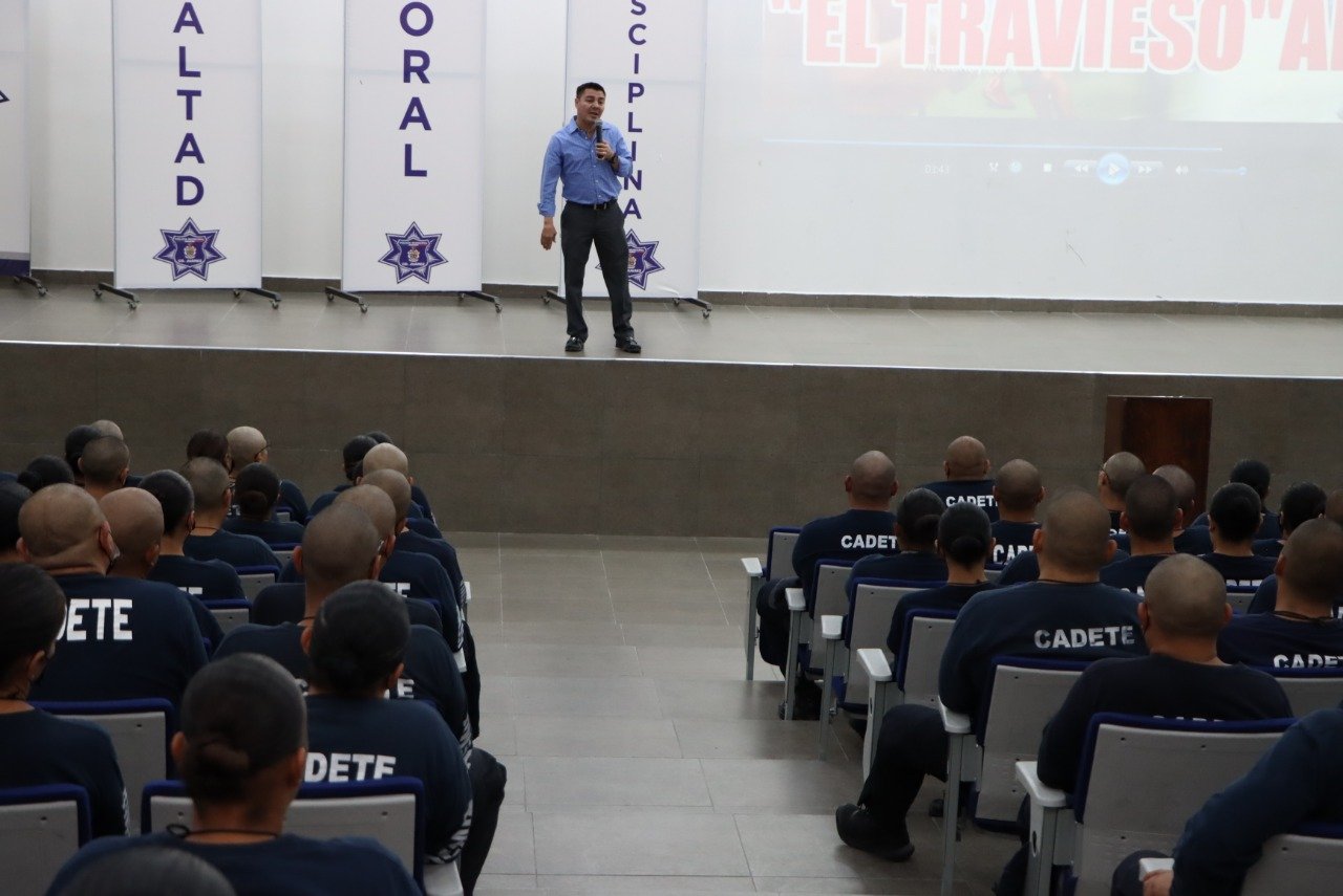 Cadetes de la Academia Municipal de Policía tomaron la plática motivacional “La Promesa que Cambió mi Vida”, impartida por el ex boxeador mexicano Jorge “El Travieso” Arce.