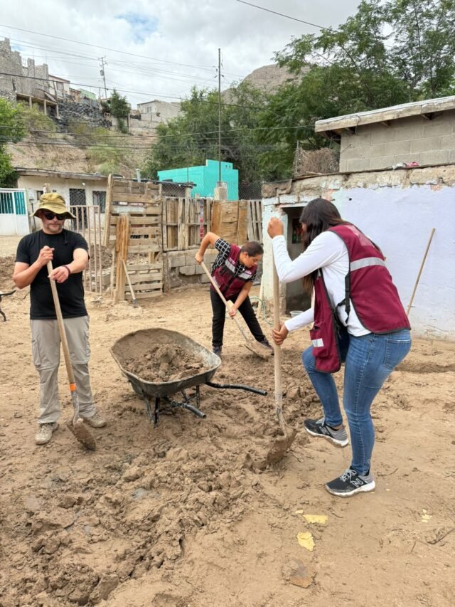Hoy, desde las ocho de la mañana, la brigada de apoyo que ha recorrido las calles de la colonia Plutarco Elías Calles, estuvo en su casa limpiando y acomodando la tierra para crear un cauce y evitar que el agua de la lluvia inunde de nuevo su casa.