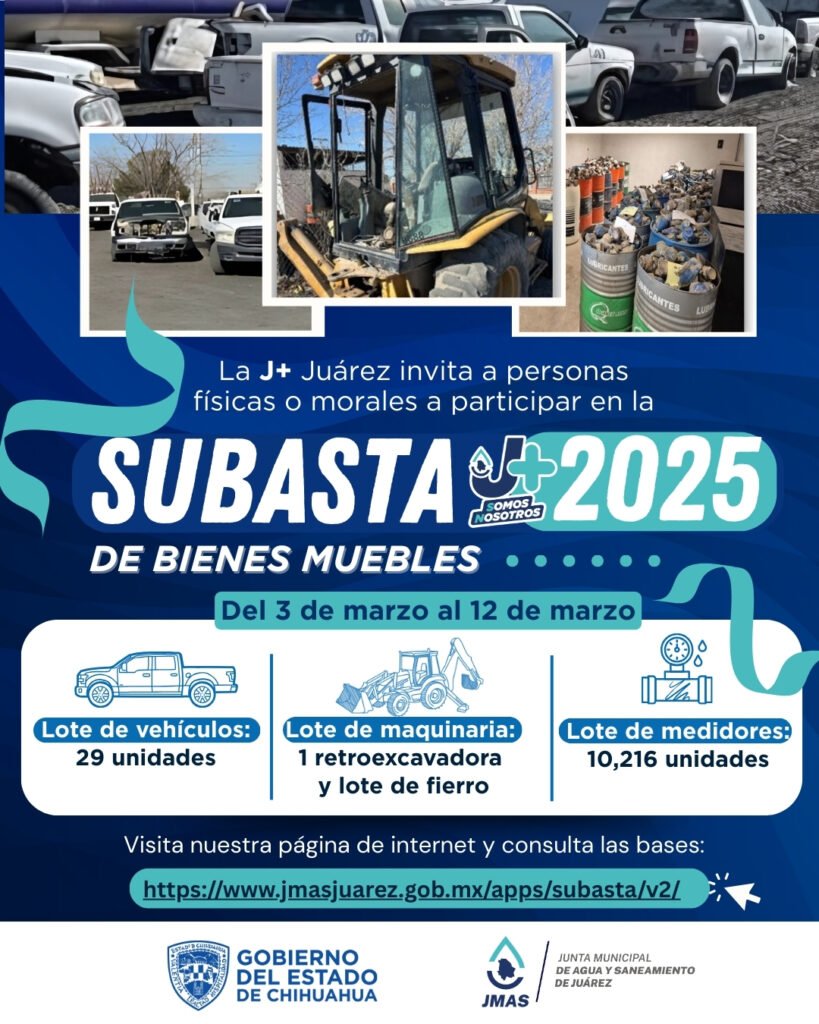 Para obtener más información sobre la subasta, los interesados pueden comunicarse al teléfono (656) 686-00-01, extensión 4205, o enviar un correo electrónico a jcamara@jmasjuarez.gob.mx.