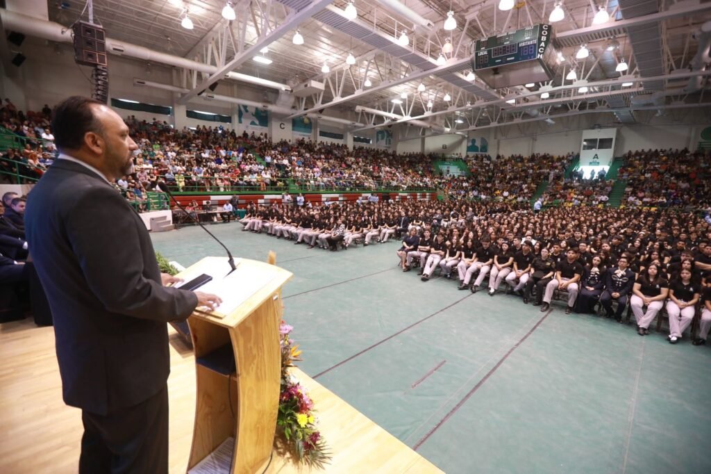 El evento se llevó a cabo en el Gimnasio del Colegio de Bachilleres, donde el funcionario refrendó el compromiso del Gobierno Municipal en seguir apoyando a los planteles, ya que la mejor inversión que se puede hacer es precisamente en la educación pública.