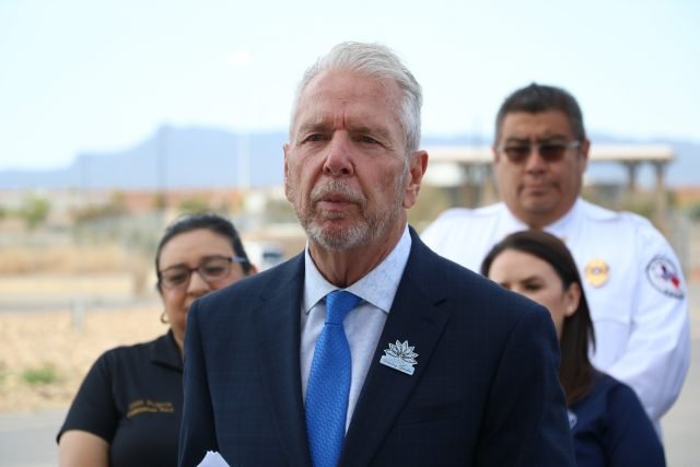 El juez del condado de El Paso, Texas, Ricardo Samaniego, se presentó esta mañana durante la aplicación de las vacunas del programa binacional que se llevó a cabo en la zona de Tornillo, a escasos metros del puente internacional.