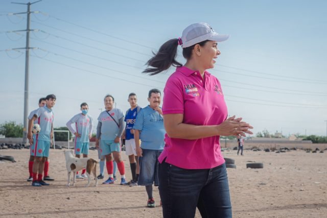 Este domingo, Lilia Merodio, candidata a diputada Federal por el Distrito 01 de Chihuahua, fue invitada especial en un torneo relámpago de fútbol. Los jugadores dieron la bienvenida a Lilia y escucharon sus propuestas. En el torneo estuvo presente Celeste Vidal, jugadora profesional en la liga MX femenil en el equipo Fútbol Club Juárez; “Así como nosotros nos vamos a comprometer en apoyarla, sus promesas son deudas y aquí queremos ver nuestras canchas con pasto sintético”, dijo.