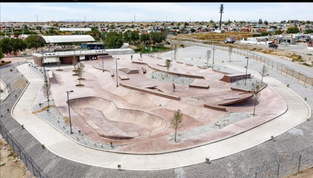 La obra fue construida por la Secretaría de Desarrollo Agrario, Territorial y Urbano (SEDATU) del Gobierno Federal en el 2019 en el parque Jesús “Chuy” Mota (Parque Oriente) ubicado en Tierra Nueva, al suroriente de Ciudad Juárez, donde practican patinaje, skateboard, scooter y bicicleta, tanto aficionados nacionales como de diversas ciudades de Estados Unidos.