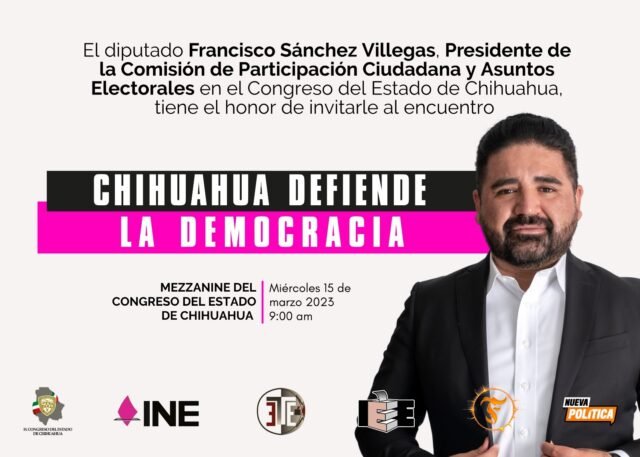 Chihuahua- Francisco Sánchez Villegas, diputado de Movimiento Ciudadano, anunció la celebración del primer encuentro “Chihuahua defiende la Democracia”, el cual tendrá lugar el próximo miércoles 15 de marzo en el Mezzanine del Congreso del Estado de Chihuahua a partir de las 9 de la mañana.