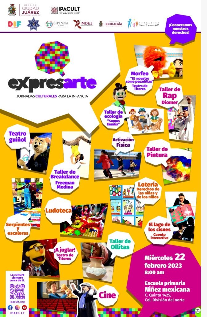 Mañana miércoles 22, a las 8:00 de la mañana, se llevará a cabo el programa ExpresArte en la Escuela Primaria Niñez Mexicana, ubicada en la calle Quinta número 1425 de la colonia División del Norte.