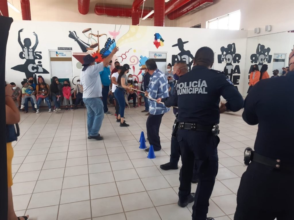 A través de la función del teatrino, los personajes característicos de la Policía Municipal como la Maestra Venadita, el Lobo Bobo, el Chango Marango y el Oficial Oso brindaron información acerca de los programas preventivos y servicios que brinda la SSPM, así como información sobre los números telefónicos de los Distritos Policiales, resaltando que están al servicio de los ciudadanos las 24 horas del día.