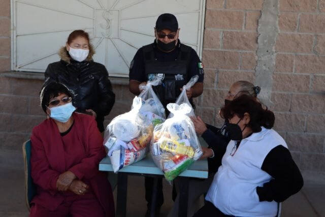 La señora Josefina Ruelas Herrera, de 78 años, se mostró agradecida con la despensa que le entregaron los Policías Municipales, ya que es viuda y no tiene familia que la apoye con sus gastos, e indicó que vive sola en su casa, por lo que los artículos que recibió son de gran ayuda.