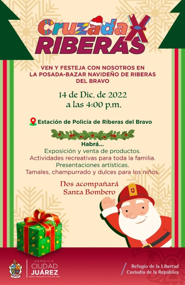 Como parte de la Estrategia Cruzada por Riberas que implementa el Gobierno Municipal, la Dirección General de Desarrollo Urbano llevará a cabo una posada-bazar navideño para los habitantes de las nueve etapas del fraccionamiento Riberas del Bravo.