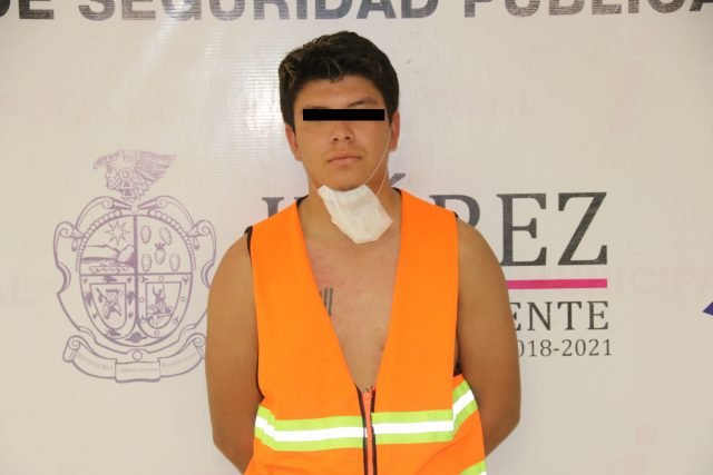 Con las características aportadas por el quejoso, los agentes realizaron la búsqueda del responsable, logrando localizarlo calles más adelante del cruce en mención, en donde ante el señalamiento directo se procedió a la formal detención del masculino.