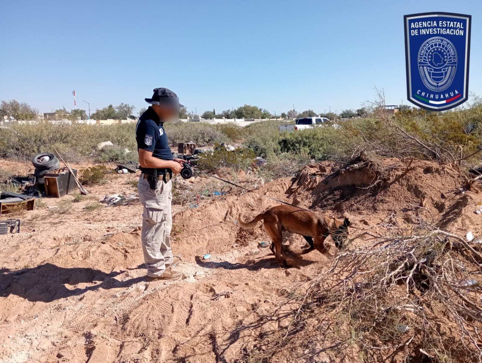 El operativo efectuado por elementos de la Agencia Estatal de Investigación (AEI), del Grupo K-9, personal de la Dirección de Servicios Periciales y Ciencias Forenses, contó con el apoyo de la Junta Municipal de Agua y Saneamiento (JMAS), que proporcionó maquinaria para remover la tierra.