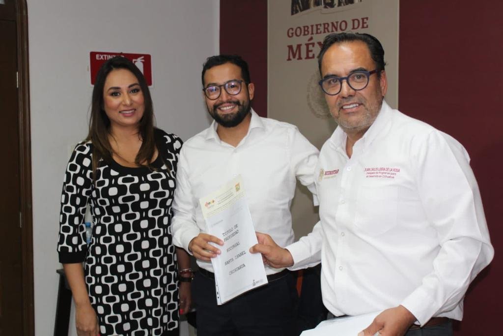 También en el encuentro, al que también asistió la coordinadora para la construcción de os Bancos de Bienestar en Chihuahua, Fátima Guzmán Gallardo, el delegado entregó cuatro títulos de propiedad a nombre de las sucursales de Janos, Santa Isabel, Aquiles Serdán y Madera.