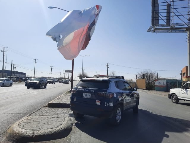 Durante la tarde, Protección Civil reportó que las fuertes ráfagas de viento desprendieron la lona de un anuncio espectacular en el bulevar Óscar Flores, cerca del cruce con el bulevar Teófilo Borunda, lo que obligó a la intervención del Departamento de Bomberos para retirarla del poste del alumbrado público en el que se encontraba y evitar así incidentes entre los automovilistas.