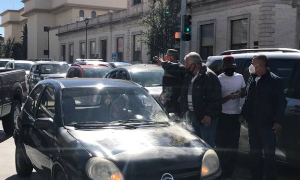 Alrededor de las 9:00 horas arrancaron rumbo a la zona centro de la ciudad para plantarse y hacer un mitín frente a Palacio de Gobierno.