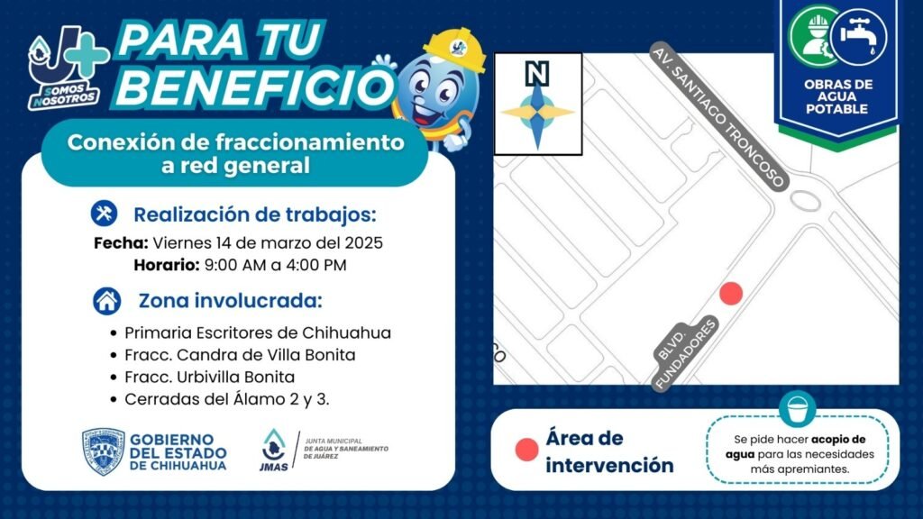 Para que más juarenses puedan contar con el servicio de agua potable, la J+ anuncia que se conectará un nuevo fraccionamiento a la red general.