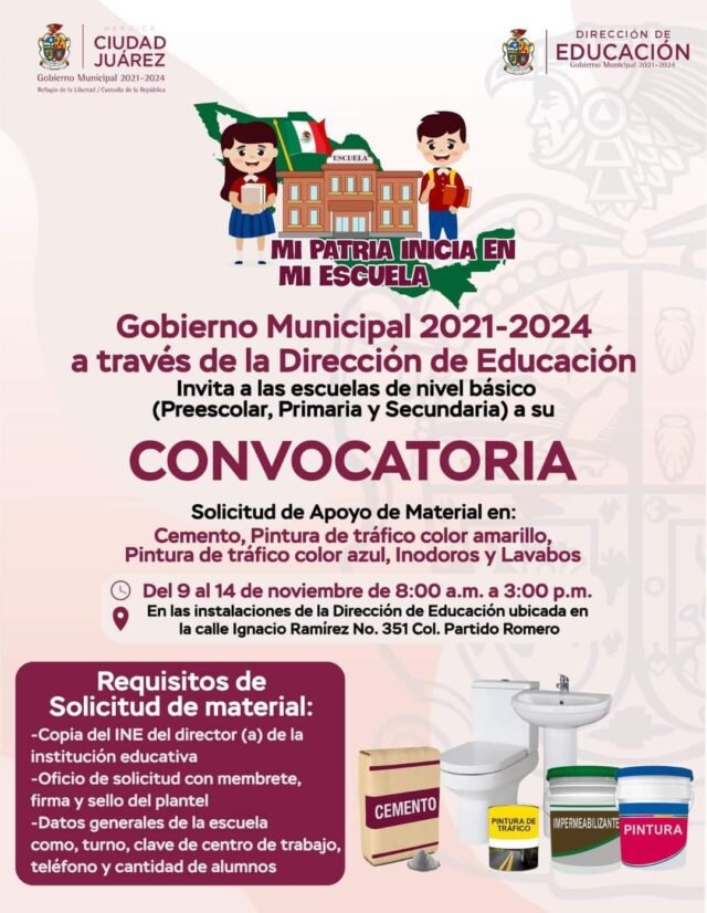 La Dirección de Educación Municipal invita a las instituciones educativas de nivel básico a participar en la convocatoria para apoyarlos con materiales, ya que mañana es el último día para recibir las peticiones.